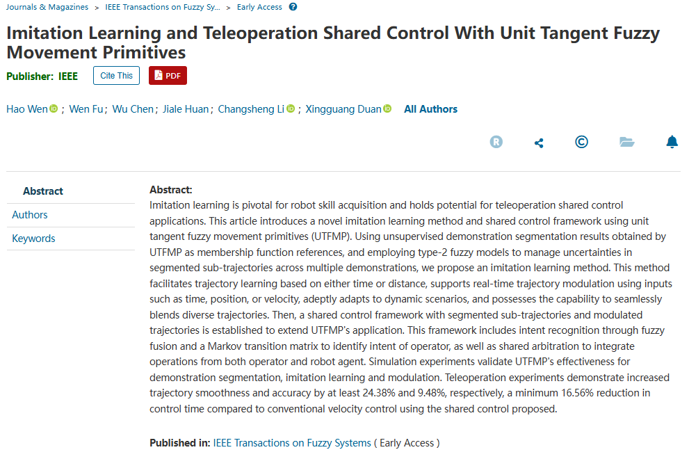 • 北理工新葡萄8883官网amg医疗机器人团队在机器人技能学习及共享控制领域取得新进展