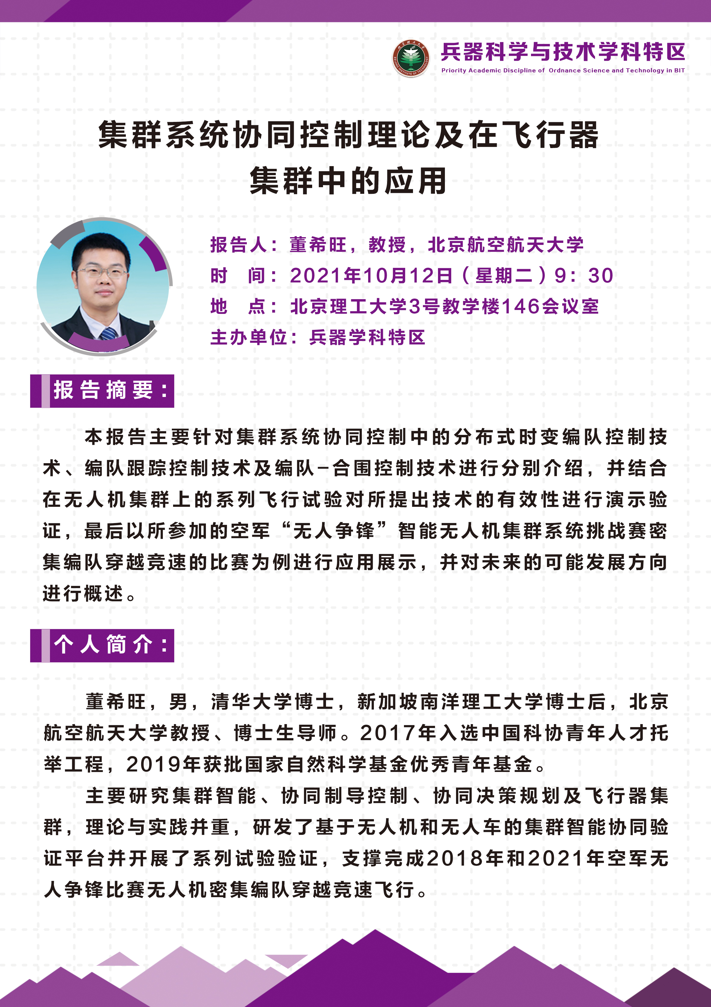 讲堂主题:集群系统协同控制理论及在飞行器集群中的应用