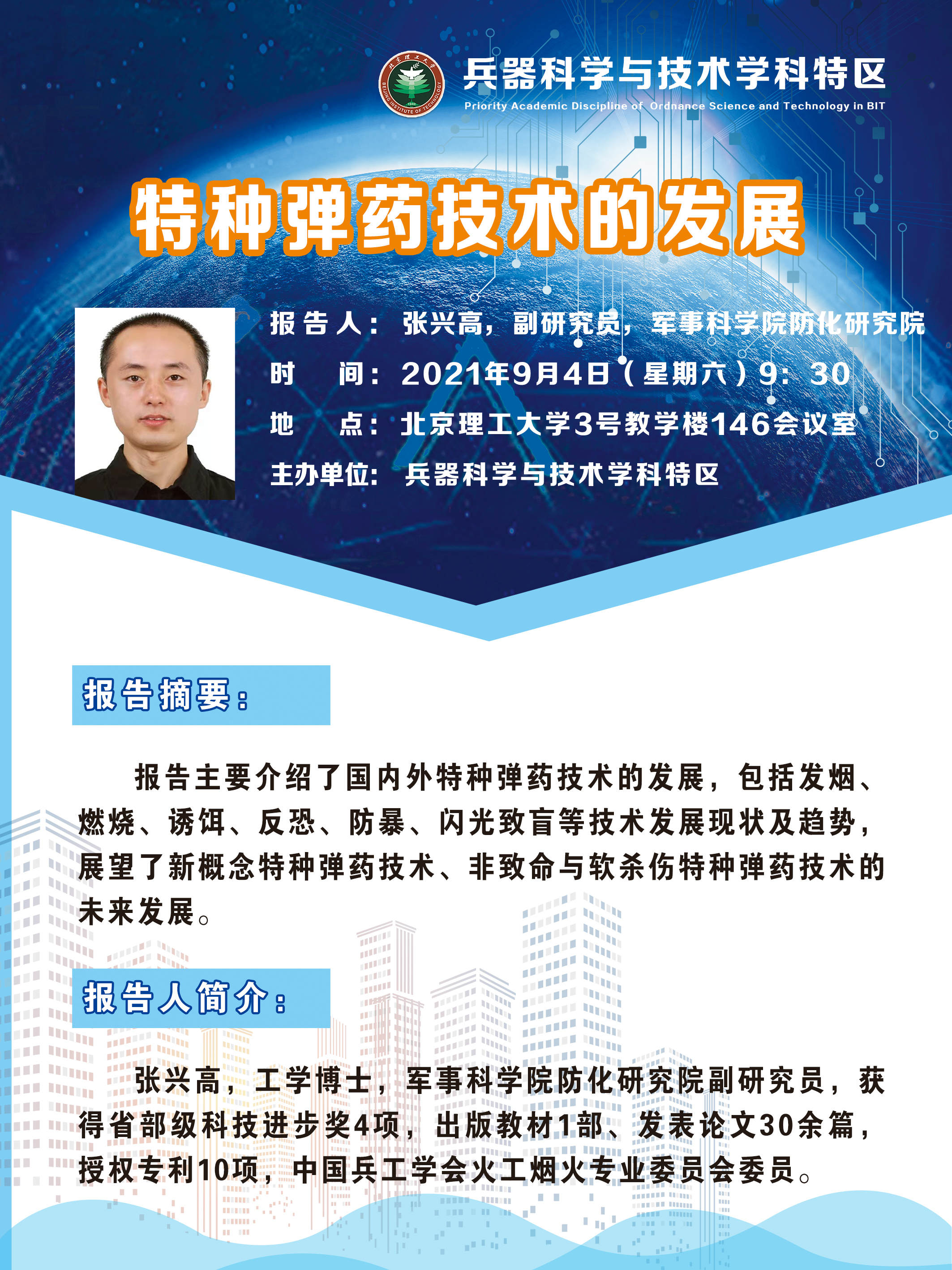 为兵器科学与技术学科的青年教师、研究生与相关学科的校外优秀学者提供思想碰撞、交流的平台,营造良好学术气氛,诚邀参加2021年第一期新葡萄8883官网amg“兵器讲堂”学术活动。