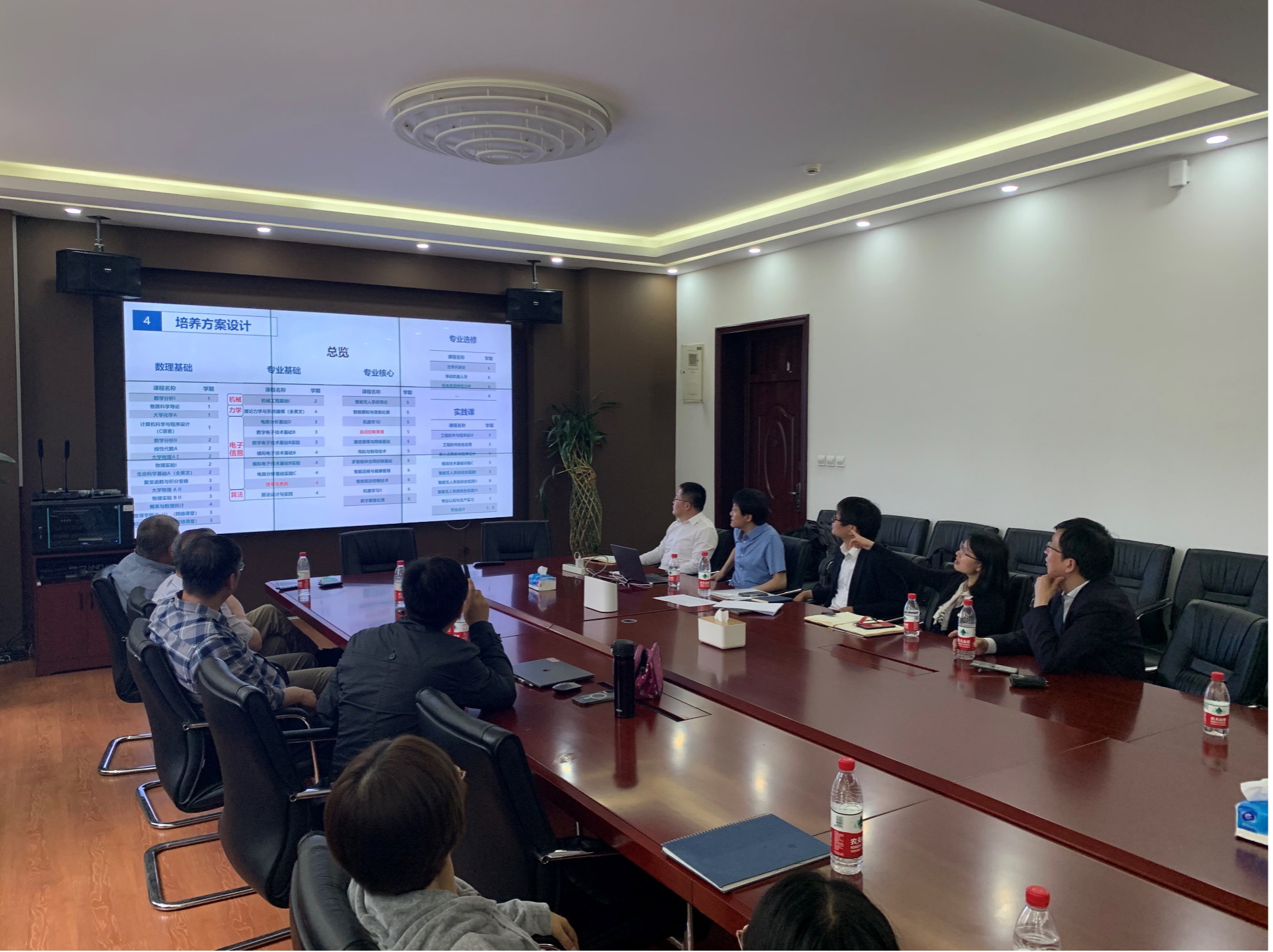 随后,学院领导与智能系全体教师召开了智能系发展座谈交流会,会上首先听取了邓宏彬教授介绍了智能系本科生教学课程培养规划。陈鹏万院长在讲话中强调,智能无人系统技术专业培养课程体系的建设要通过多学科交叉融合,围绕智能无人系统领域的相关理论方法和应用研究,积极听取校内外类似专业的课程设置经验,打造具有专业特色的培养体系,将其建设成为学院优势特色专业,为学校培养更多的优秀人才。最后,本系全体教师针对智能系发展目标及规划,围绕人才培养、学科建设、科学研究和队伍建设等方面开展了深入的研讨。