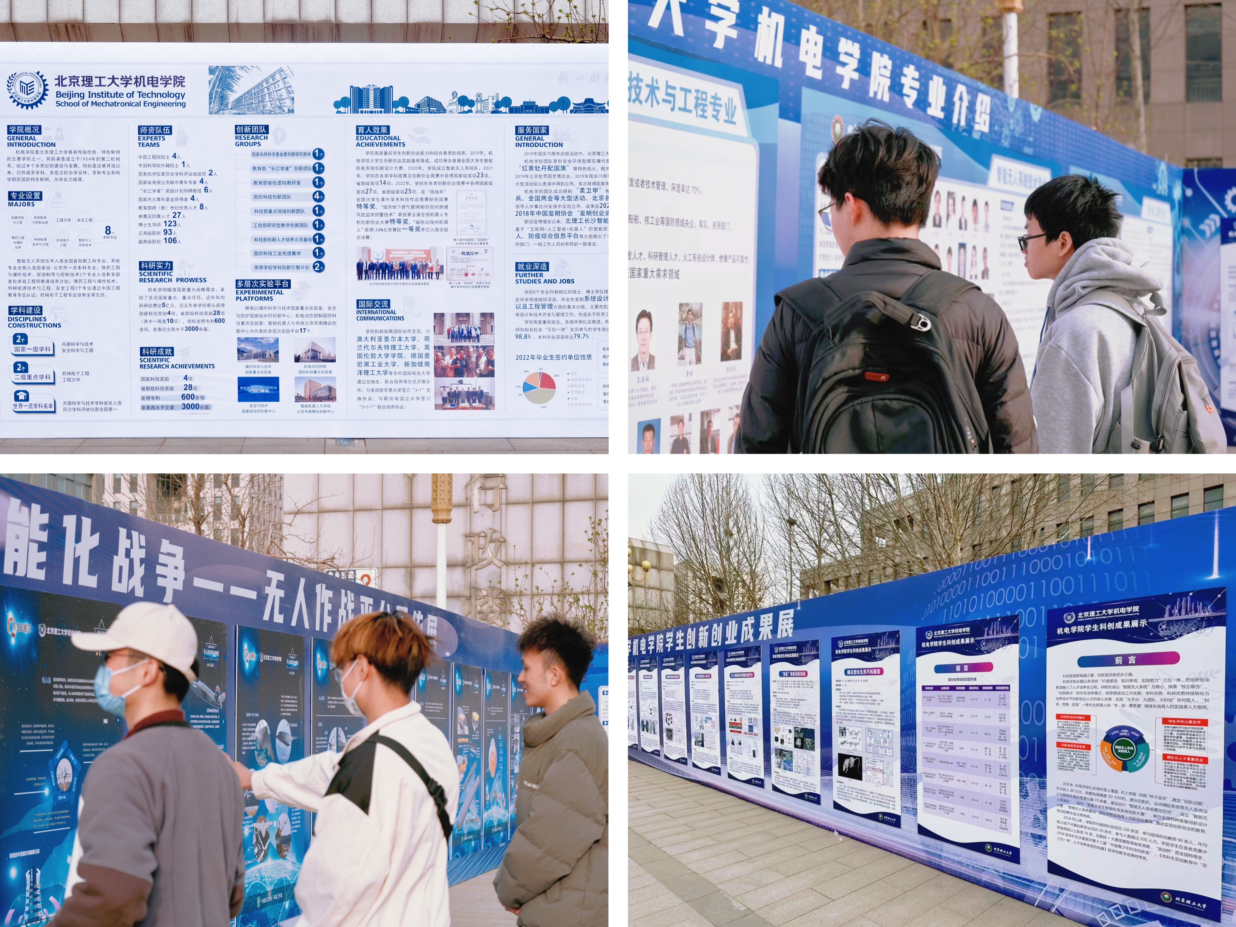 3月24日,“兵智融合”系列展览与“兵器嘉年华”活动在良乡校区行政楼前广场启动,千余名师生在活动现场驻足停留。专业介绍展览生动详尽地向本科生多维度展示了新葡萄8883官网amg概况、专业设置、学科建设、师资队伍、科研实力、就业方向及优秀校友。学生科创作品成果展览展示了学院的优秀成果,从仿生机器鼠到智能消防系统,从轮履腿陆地航母到预警疏散软件,图文并茂地揭开优秀科技创新作品的神秘面纱。智能化无人系统展览以知识科普的形式对地面无人平台、无人机、无人艇、无人潜航器、仿生平台等作战系统以及四大核心组成单元进行了充分介绍,展示了国家重大需求领域的重要研究方向。现场驻足的青年学子,或三五好友交流讨论,或抄写记录重要信息,在国家重大需求与科技的巧妙结合中,学生们感受到创新思维的萌发与碰撞,开启了对专业规划选择的深入思考,燃起了为国铸剑的青年豪情。