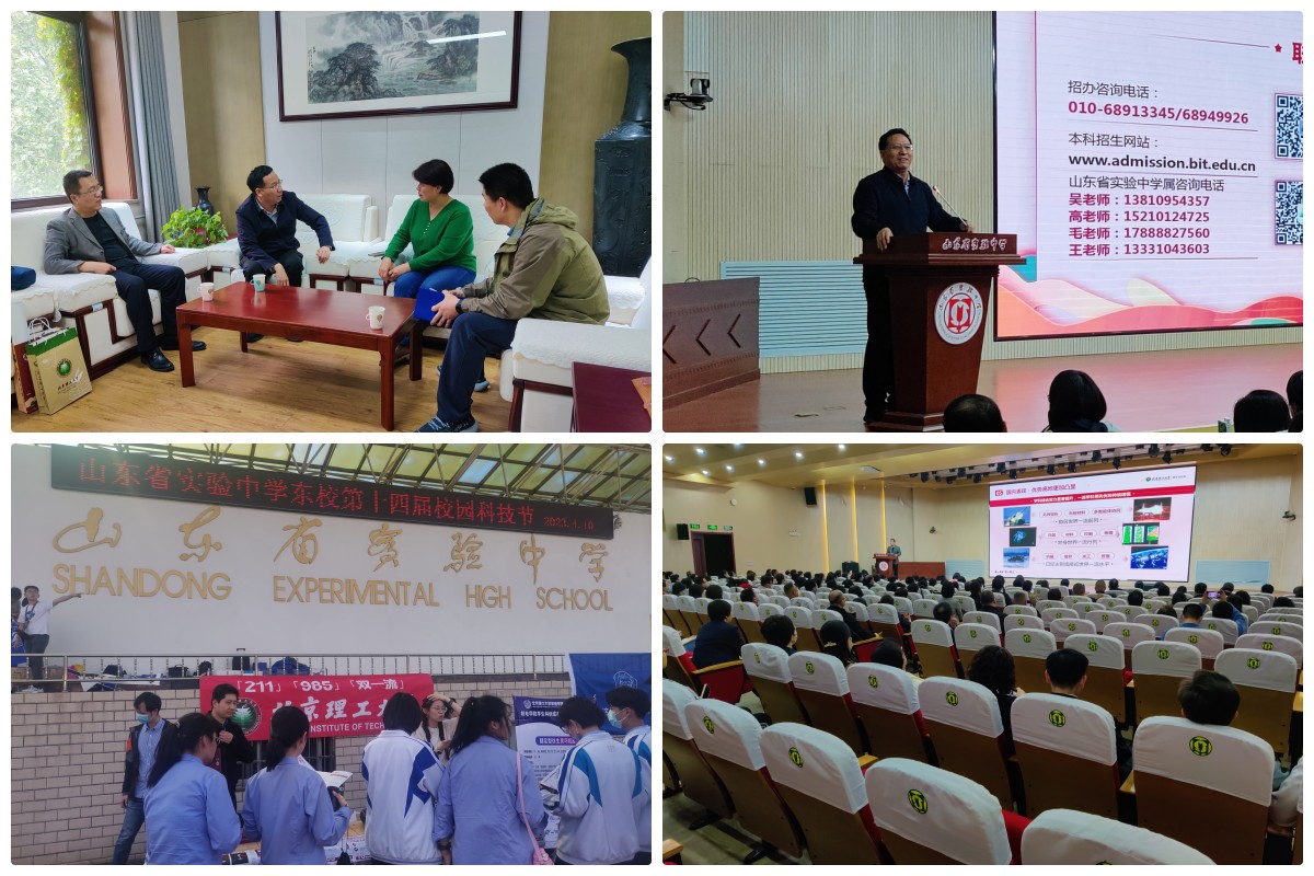 4月13日,王成率招生组一行前往山东省实验中学,北理工智能无人系统队参加中学科技节展示活动,招生组老师为中学赠送喜报,双方进行座谈交流、招生宣讲、科普讲座等活动,受到中学师生的热情欢迎,在高中学生群体中扩大了新葡萄8883官网amg的知名度,使得更多优秀山东学子认可北理工、选择北理工。