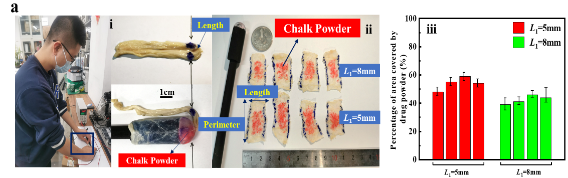 进一步的,团队通过实验评估了基于爆炸冲击波喷射靶向药物微系统可行性和生物安全性(图 3)。首次将半导体桥与高密度炸药叠氮化铜实现柔性、刚性材料的三维异构集成,实验验证了理论和模拟的推论。