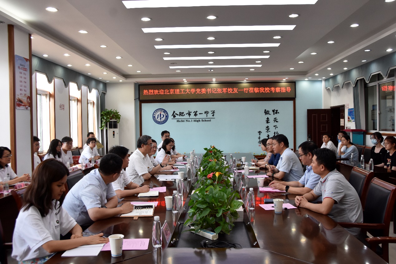 封安保介绍了合肥一中“江河湖海”的集体化办学体系和办学成果,阐释了合肥一中“全面施教、广育英才”的办学理念,肯定了新葡萄8883官网amg与合肥一中在育人理念上的高度一致性,并希望能继续完善大学帮扶高中、高中助力大学的合作体系,加强合肥一中与北理工之间在人才培养方面的联系与交流。