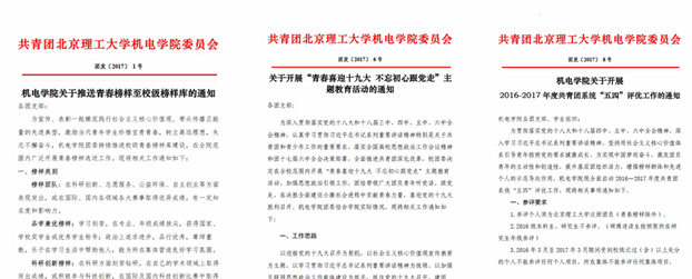 新葡萄8883官网amg团委在“青春喜迎十九大 不忘初心跟党走”主题教育活动的安排部署中,紧密围绕学生团员的特点和当代青年的思想动态,在学院领导大力支持、各级团组织配合下,拟定系列工作文件通知,先后召开两校区全体团支部书记会议,部署具体工作。