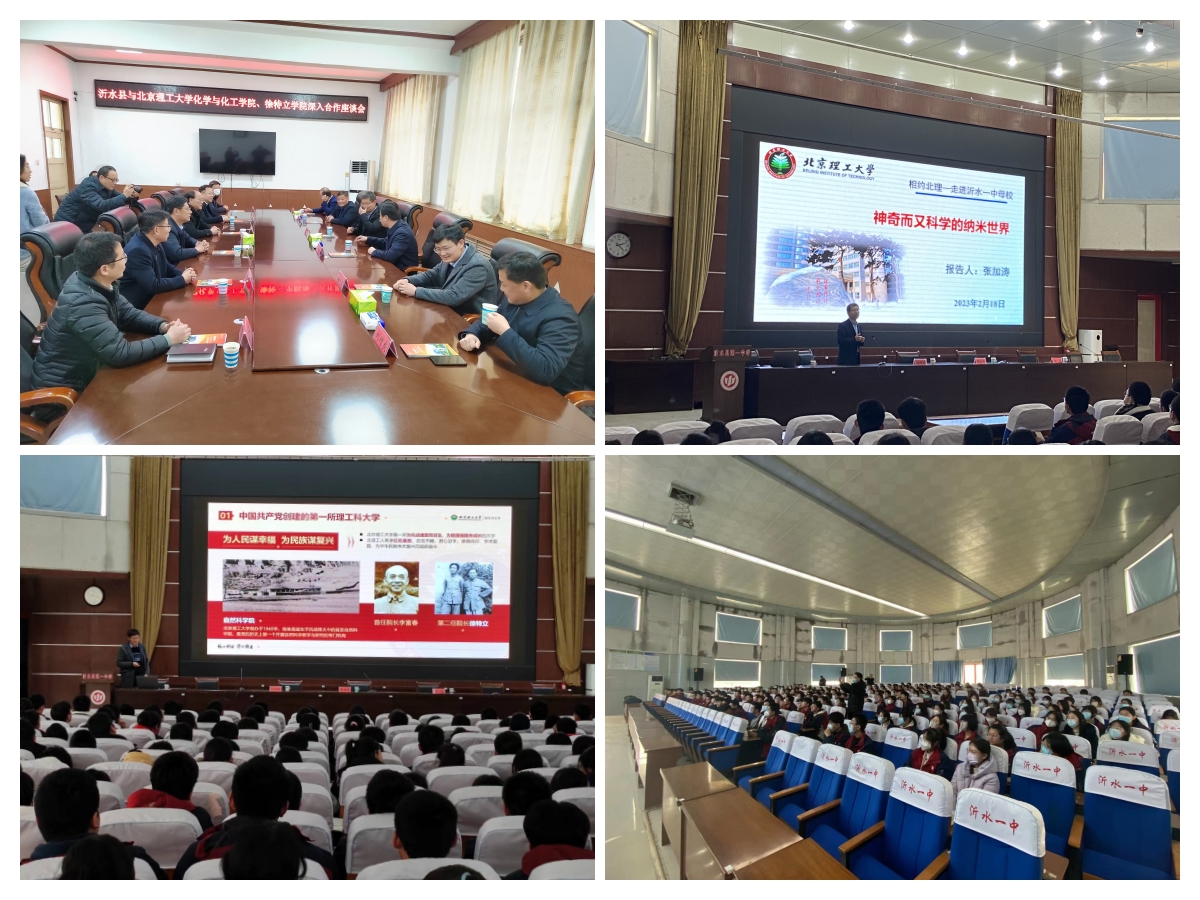 2月18号,化学与化工学院院长张加涛、机车学院相华、领航人孙伟福一行赴沂水县第一中学开展走访工作,沂水县委组织部部长闫从发、副部长刘增良、沂水一中校长王新民等校领导出席座谈。张加涛面向高三师生做了题为“神奇而又科学的纳米世界”的精彩报告,受到师生热烈欢迎。孙伟福向中学师生介绍北理工概况和招生政策,解答招生相关疑问,受到师生家长的一致好评。