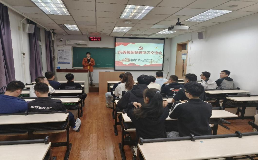 观影前,学生党团支部分别组织开展志愿军精神学习活动。党支部负责人以PPT展示、故事讲述、纪录片观看的方式讲述了抗美援朝战争的背景、经过、特点和意义,以及抗美援朝精神的内涵。同学们结合自身专业背景,分享了抗美援朝精神对于新时代军工人的意义。