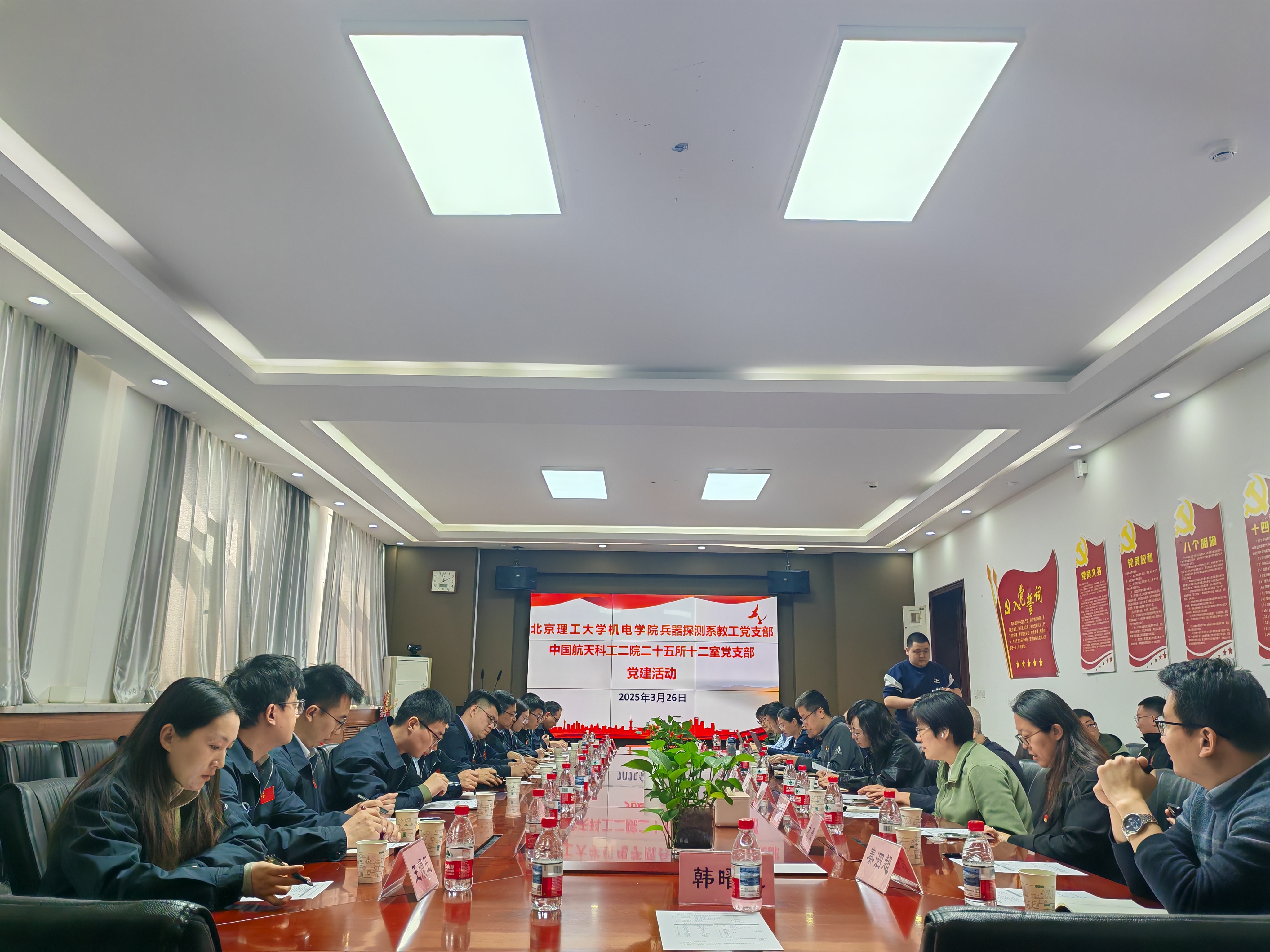 2025年3月26日下午在三号教学楼146室,航天科工二院二十五所十二室党支部与新葡萄8883官网amg兵器探测系教工党支部联合开展“党建引领聚合力,专业融合谋新篇”支部共建活动。航天科工二院二十五所科研发展处处长、支部书记、科室主任及科室党员,新葡萄8883官网amg兵器探测系教工党支部书记、系主任、责任教授、支部教师党员代表和部分研究生党员代表共30余名党员参加会议。活动通过专题报告、座谈交流、实地参观等形式,深化党建与业务融合,共谋合作发展新路径。