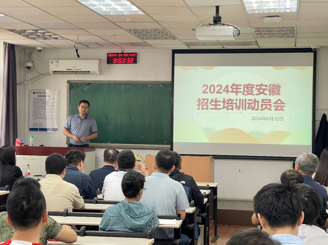 6月12日上午,安徽招生组召开2024年度安徽招生培训动员会,新葡萄8883官网amg全体班子成员与安徽省各地区领航人参会。
