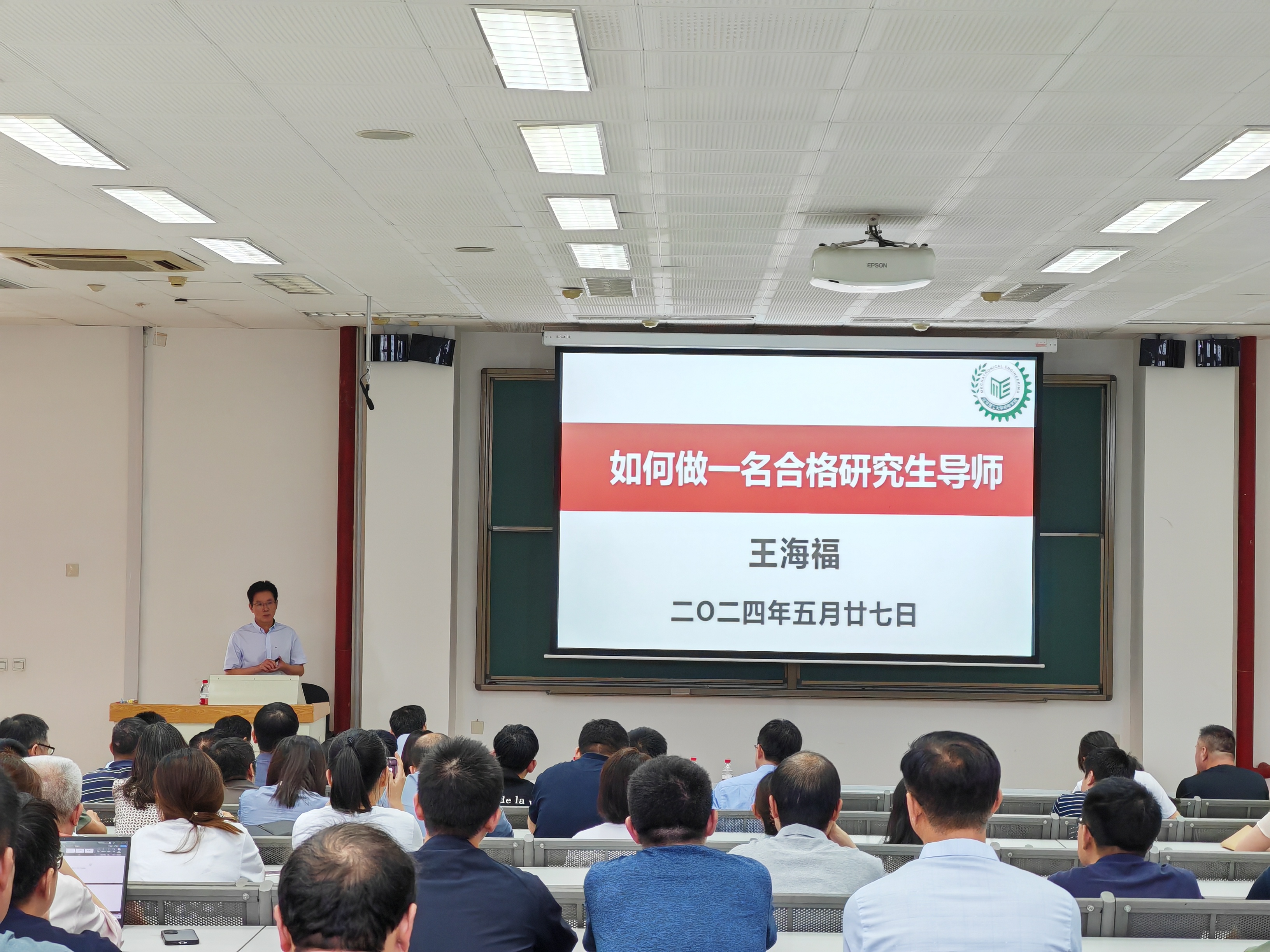 院长王海福院士做了《如何做一名合格研究生导师》的专题报告,从做人之道、做学问之艺、做论文之能三个方面,与大家做了深入交流,并从博士学位论文选题、文献查阅、总体结构、学术创新、撰写规范、预答辩等方面,提出了要求和希望。